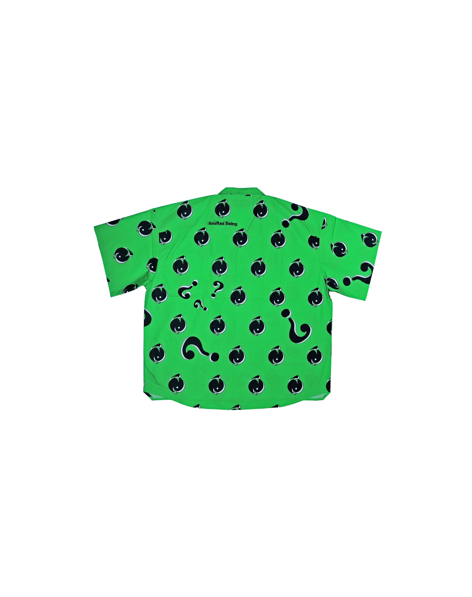 SauRasオリジナル型紙による開襟アロハシャツ型です。表地は40番手のコットンを丁寧に織り上げた、肌理の整った平織のタイプライターです。 繊細なワッシャー感のある生地はパリパリとしたペーパーライクな手肌触りで、清涼感があり、夏にピッタリのシャツ地です。この基布を採用し、NAQSによる「RIDDLER」デザインをインクジェットプリントにて表現しました。 ※製造の都合上、柄の出方は一点一点個体差がございます。